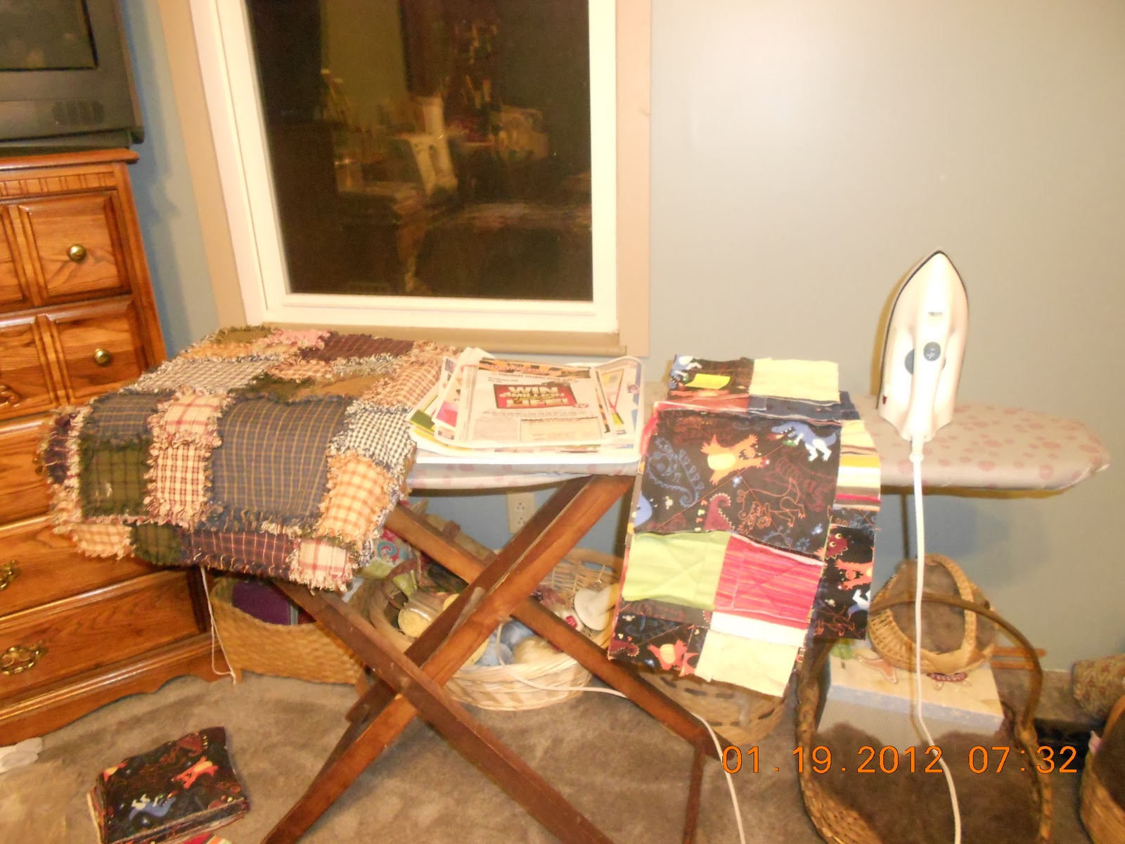 ...another thing I learned is that if I have a quilt or fabric spread out all over the floor, no one bothers my stuff & the room doesn't get as dirty. But, if I pick everything up when I am done, they will wear their shoes on the carpet, bring in food and leave a mess that needs to be cleaned before I can spread out my stuff again!
